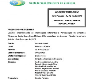 Circular Seleções Brasileiras SB 003 -2020 – Grand Prix – Moscou – RUS